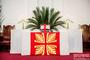 The sanctuary was adorned with symbolic palm branches along the walls, columns, and around the pulpit, commemorating the triumphal entry of Jesus Christ into the holy city.